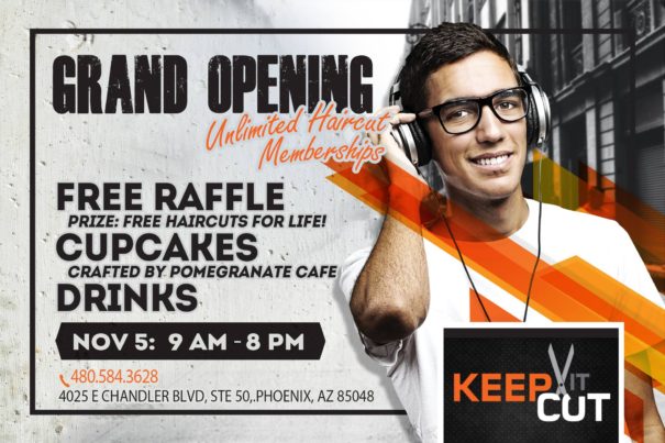 Keep It Cut Grand Opening Ahwatukee Open for Business Grand Opening Ahwatukee! Nov 5, 2015, 9a-8p. Free entry to win haircuts for life. Cupcakes from Pomegranate Cafe & drinks!